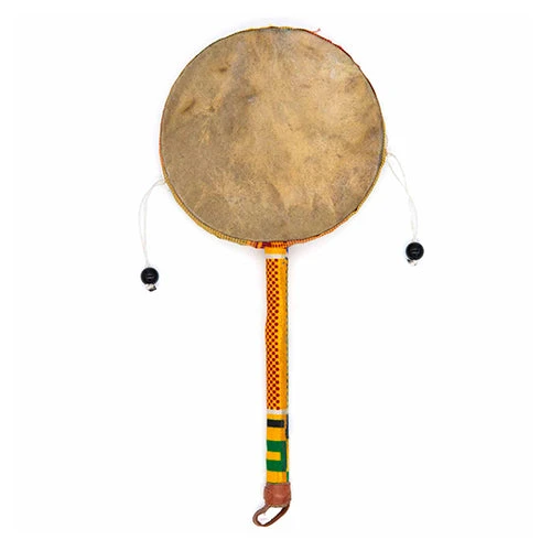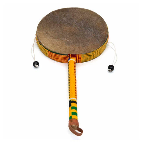Hold the handle between your palms and twist it back and forth. The attached beads will swing and strike the drum heads on each side, producing the classic “pocking” sound that monkey drums are known for. It’s fun and intuitive for all ages.