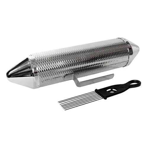 The percussion Atlas Metal Guiro is a two in one musical instrument and can be used as a guiro or large shaker. The instrument is made from stainless steel and comes equipped with an 8-prong scraper which is also known as a rasp. The guiro shaker has an attached metal handle for secure holding and precise playing.
