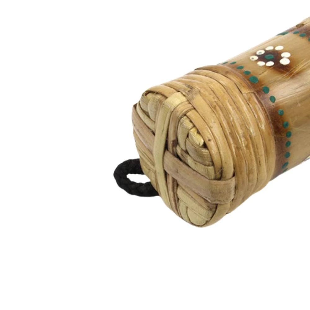 This Bajawa Rainstick has an elegant hand-painted dotted design and is rustic and very naturally beautiful. To play the Bajawa Rainstick simply upturn the instrument until the rocks inside begin to fall down slowly creating the sound of rain. The rainstick traditionally was used in rituals calling for rain and thunder. Each rainstick will slightly vary in shape, size and colour and design. Sometimes a clear non toxic varnish is applied to our rain sticks to give them a shiny finish and provide protection.