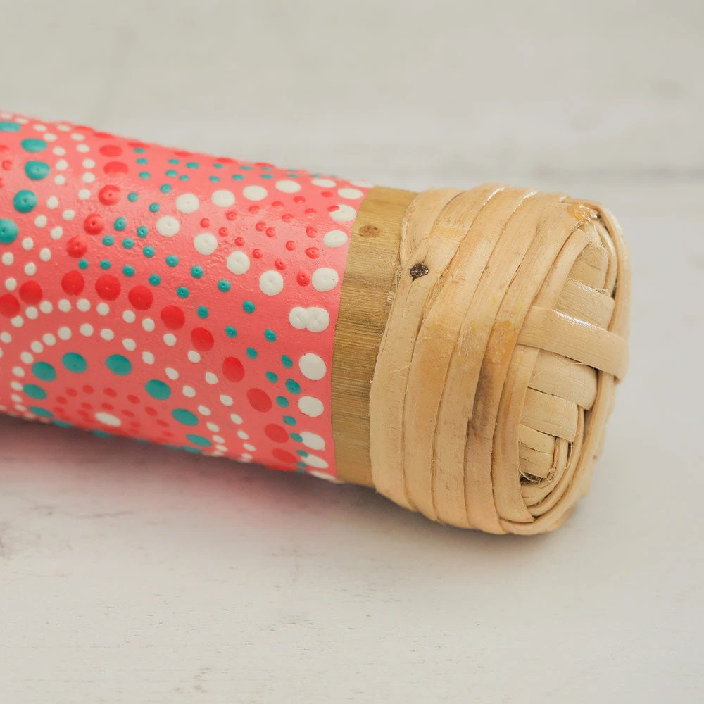 The painted bamboo rainstick is a classic musical instrument, small rainstick shakers that are hand painted. They are made from bamboo and are supplied in assorted colours, this painted bamboo rainstick comes from Bali, Indonesia. Featuring the sound of the rain, each rainstick is approx 15cms in length. This one is not full size and is a suitable gift for anyone over the age of three years old.