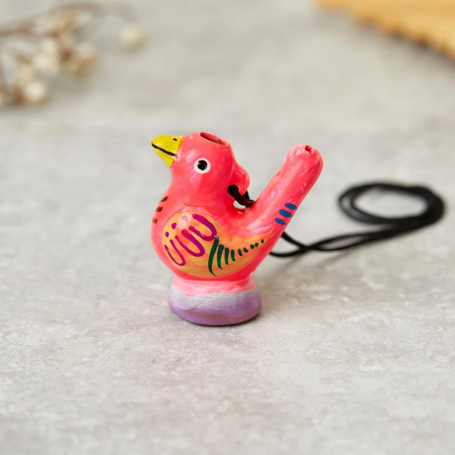 The bird whistle is made from a mix of materials. While clay is used in ceramic production, these whistles have different compositions, such as a distinct blend for the painted variety compared to the unpainted ones.