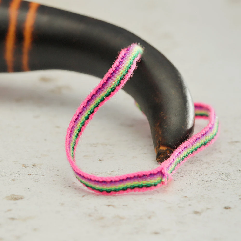 The gourd guiro shaker is a percussive musical instrument that is played by scraping a stick along the blocks indents, whilst this one does not come with a stick it is still beautifully decorated and is a multipurpose guiro gourd rainstick shaker from Peru with the addition of a handwoven strap. Each item is unique/natural and will vary in shape, size, design, and color.