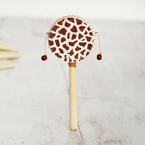 These natural hand crafted musical instruments are made with precision and care offering a blend of art and musical expression. Each drum features a turned wooden handle and bead strikers ensuring an authentic sound. The monkey drum drum is finished with intricate hand-painted designs, such as the iconic gecko, giraffe, print or zebra.