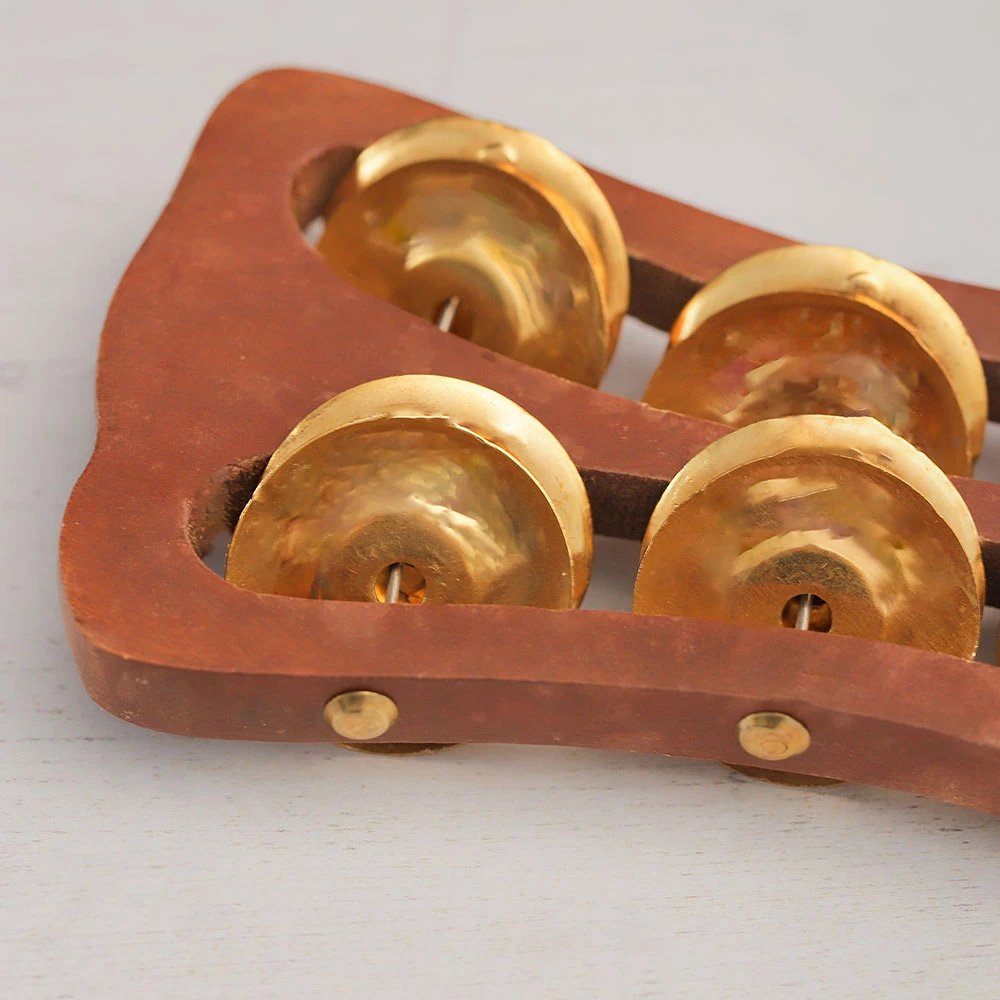 This Khartal Jhika Shaker is a classical Indian instrument that has a well-balanced wooden handle. It has six pairs of finely crafted brass jingle bells, the Khartal Jhika Shaker produces vibrant, striking sounds. The perfect mixing of metal and wood gives the Khartal Shaker its unique tone and delivers authentic sounds that will be loved by musicians and percussionists.