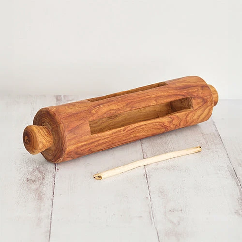 Strike the carved slits on the drum body with wooden beaters to produce distinct tones.