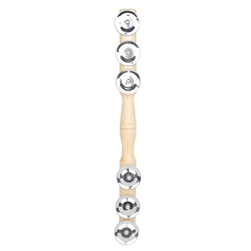 The Maul Jingle Stick is the ultimate tambourine for musical performances! Crafted with precision and innovation, it has a smooth solid wooden handle, stainless steel silver metal bells with an aluminium alloy, and integrally formed construction for a sturdy instrument. The wooden finish is treated with safe water based varnish. Not only does it create unique sounds when shaken, but it can also be used for palm beats. Each piece is expertly crafted with fine workmanship. Ideal for professionals, musicians, and parents, the Maul Jingle Stick brings joy and music to all. Hand percussion instruments like this help children develop intelligence, coordination and a sense of rhythm to music. Its unique design, which resembles a rolling pin, allows for an effortless comfortable playing experience.