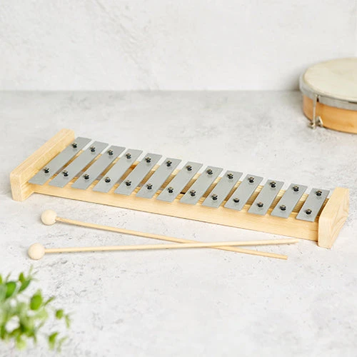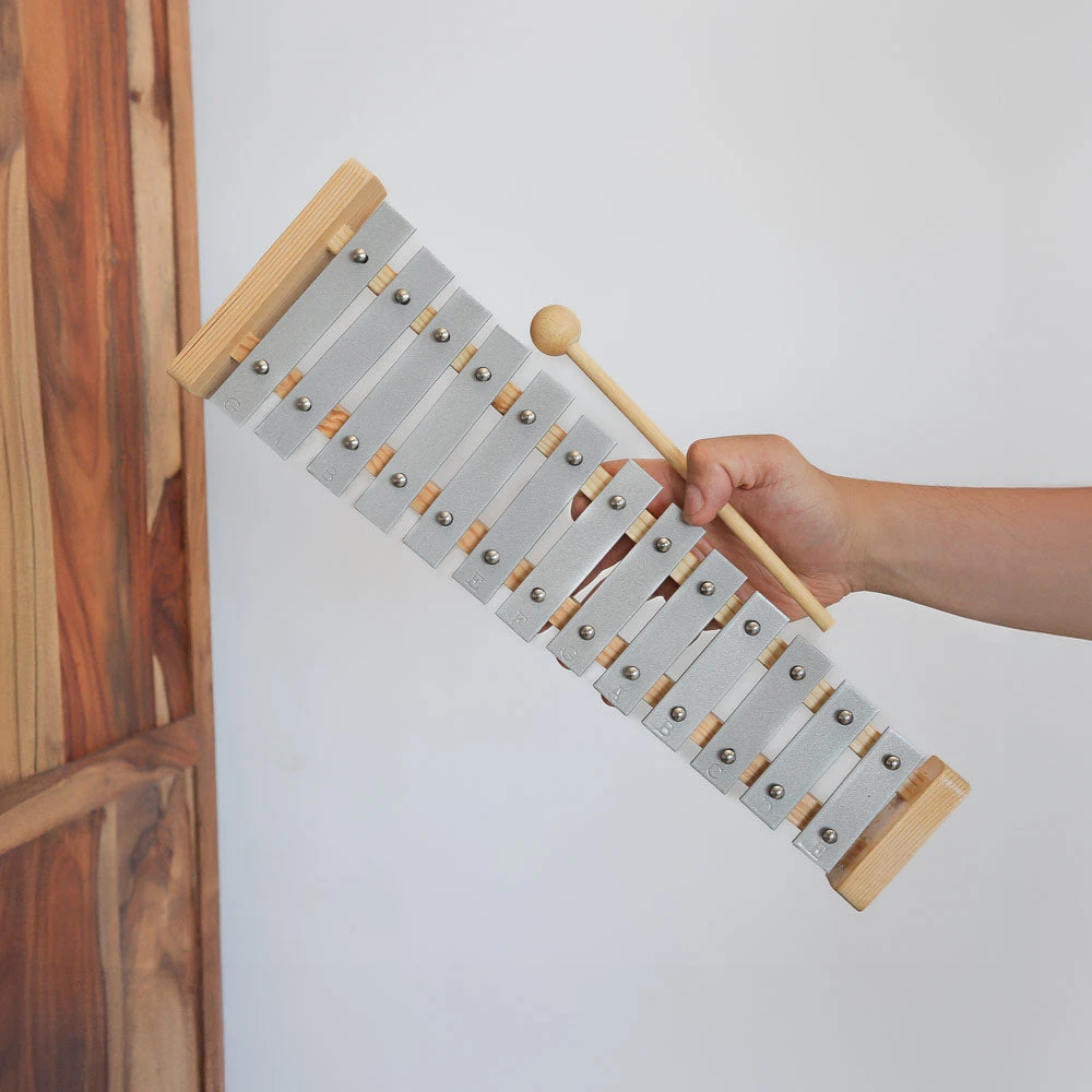 This Morii Metallophone (13 Note) glockenspiel features 13 solid metal keys, set in a sturdy solid wood frame, producing the C scale. Perfect for musicians. It includes two wooden beaters for a unique sound. Its classic aesthetic is enhanced by a contrast between grey and brown hues. Morri is a German word that means to capture a fleeting moment, if you are intentional you will find time to relax, strike a few chimes to regenerate yourself, to find clarity and to be the best you that you can.Â