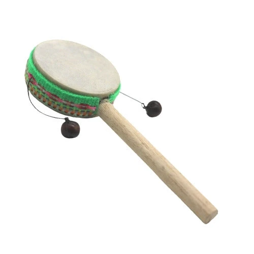 This small Peruvian Monkey Drum is so easy to play, in fact that a monkey could do it. Each one is handmade by a small family-run workshop in the mountains of Peru, South America. It has a great sound from such a small music instrument. Each one comes in with assorted colour woven band that is unique to the percussive instrument. They are approximately 6 cm Diameter and make for a wonderful birthday gift for a music person. This beautiful monkey twist drum is great for beginners.Â