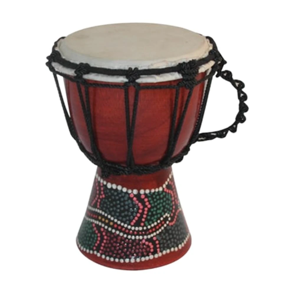 These 6″ Indonesian Djembe Drums are part of our beginner drumming series, perfect for new drummers. Handcrafted in Bali, Indonesia, each drum features a unique dot-painted design in vibrant colours. The drum top is made from natural goatskin, and each drum’s colour and pattern are one-of-a-kind. These compact drums are ideal musical instruments for children, offering a fun and engaging way to develop rhythm skills however they are not toys and should be used under supervision.