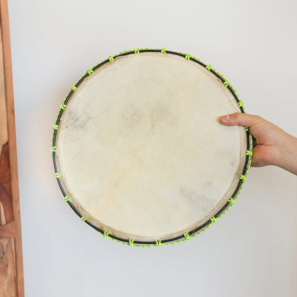 Hold the drum firmly and strike it with your hands or a soft beater to produce deep tones. Adjust your rhythm and pressure to create a range of sounds, from gentle pulses to powerful beats.